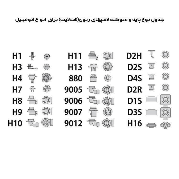 لطفا به عکس دوم توجه کنید نشان میدهد پایه هدلایت مناسب خودرو شما کدام است . همچنین در هنگام نصب به فیش مثبت و منفی هدلایت دقت کنید تا مانع اسیب زدن به خودرو و هدلایت شوید . با تشکر از شما